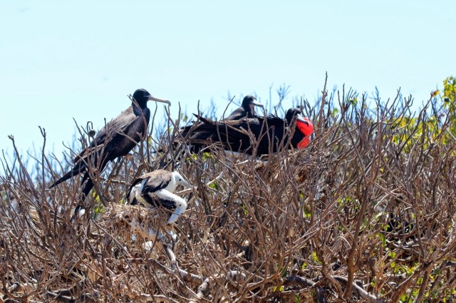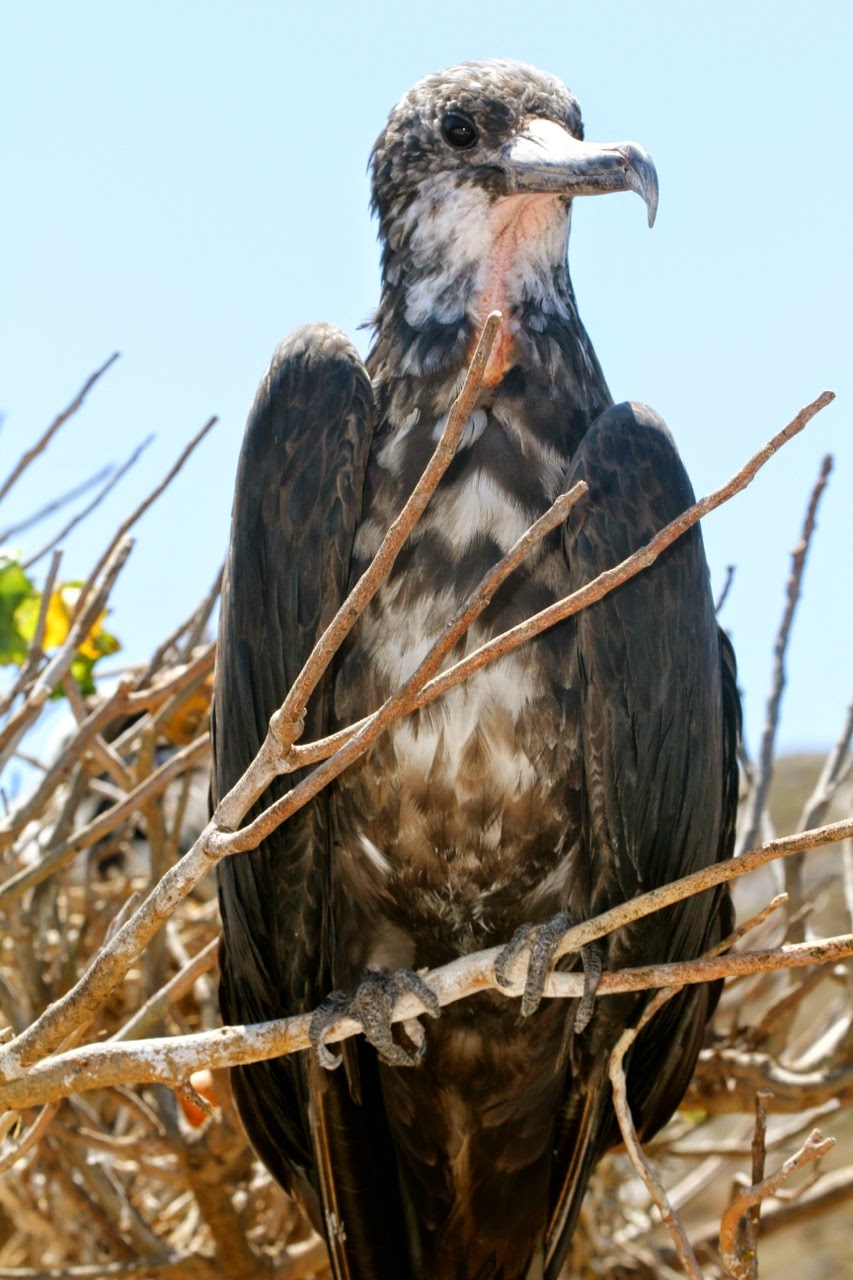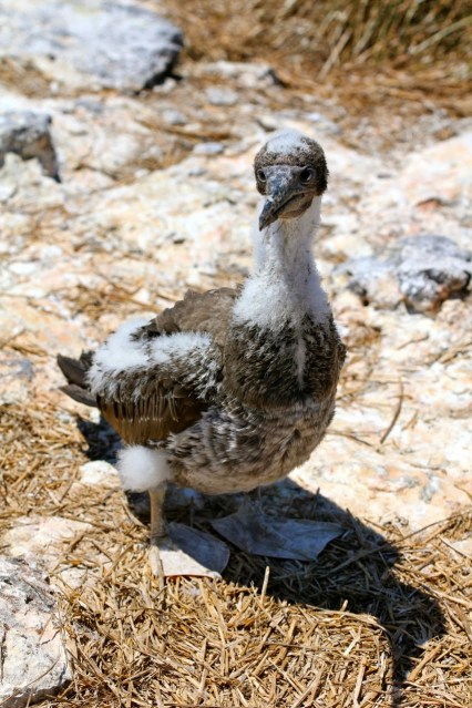 Baby Frigatebird – these birds cannot walk along on land, so the parents land in the trees to feed. If a baby falls out onto the ground, they cannot be fed by their parents and will perish