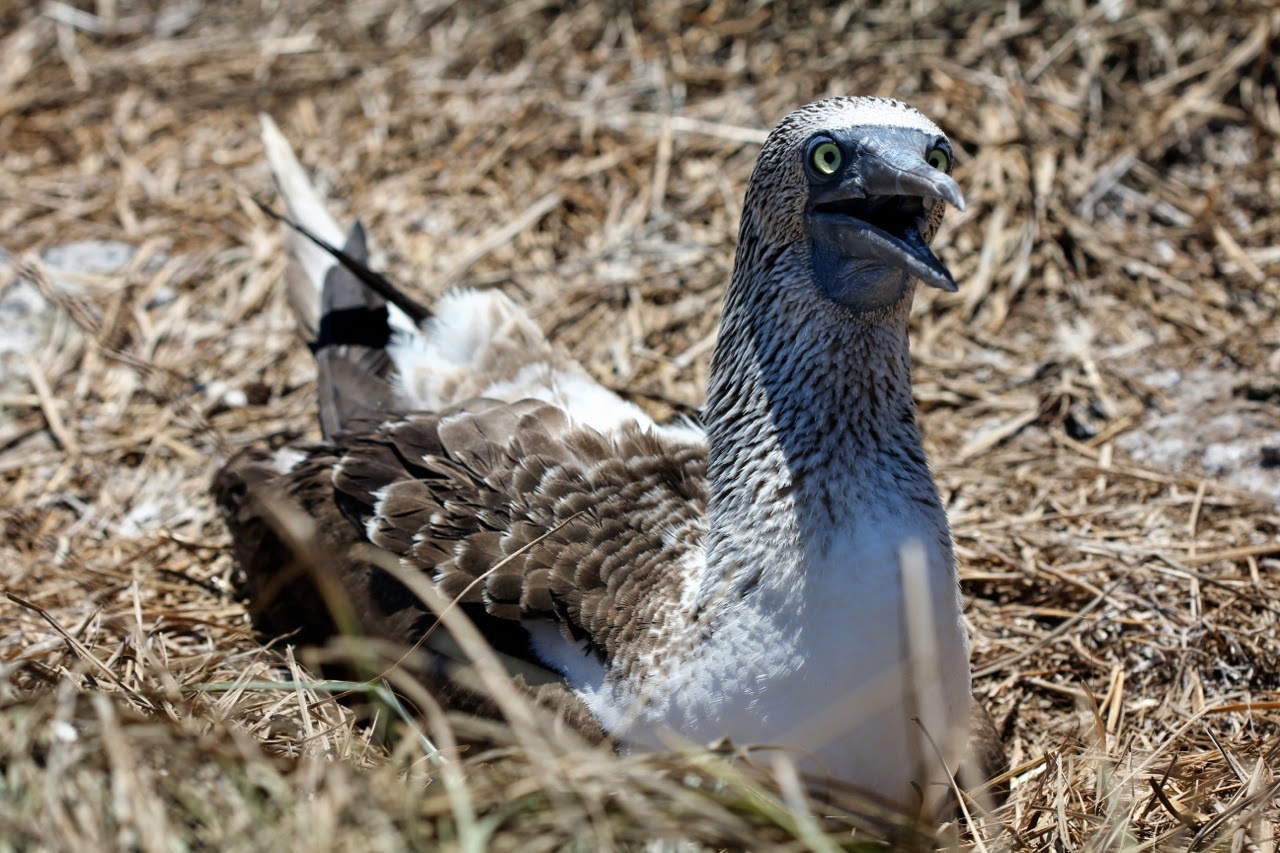 Blue-Footed Booby mother sitting her nest
