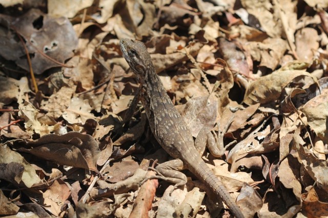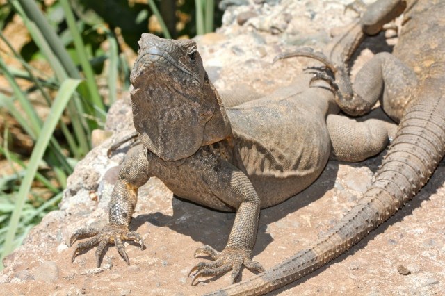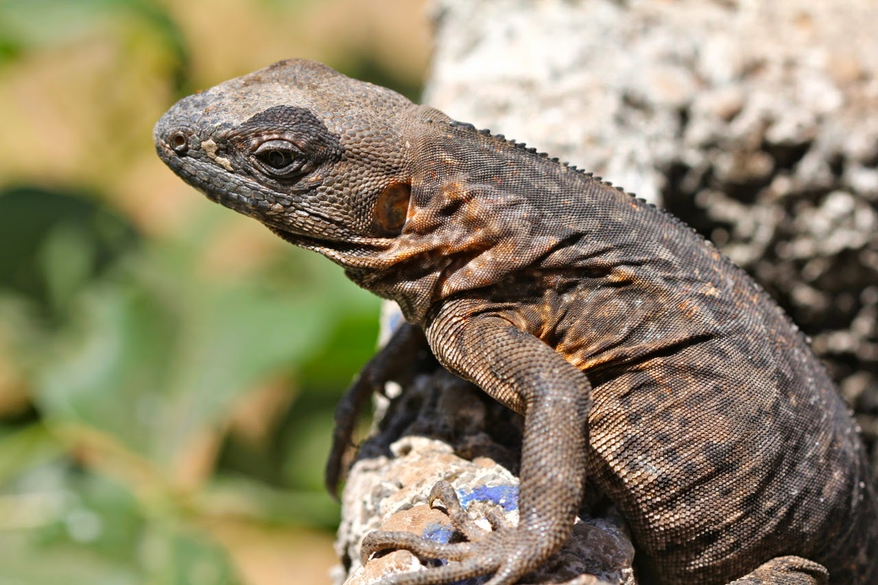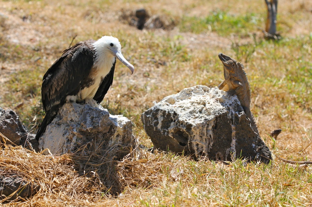 Juvenile frigatebird and an Iguana