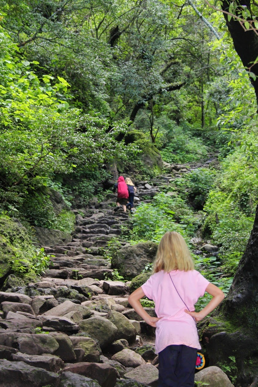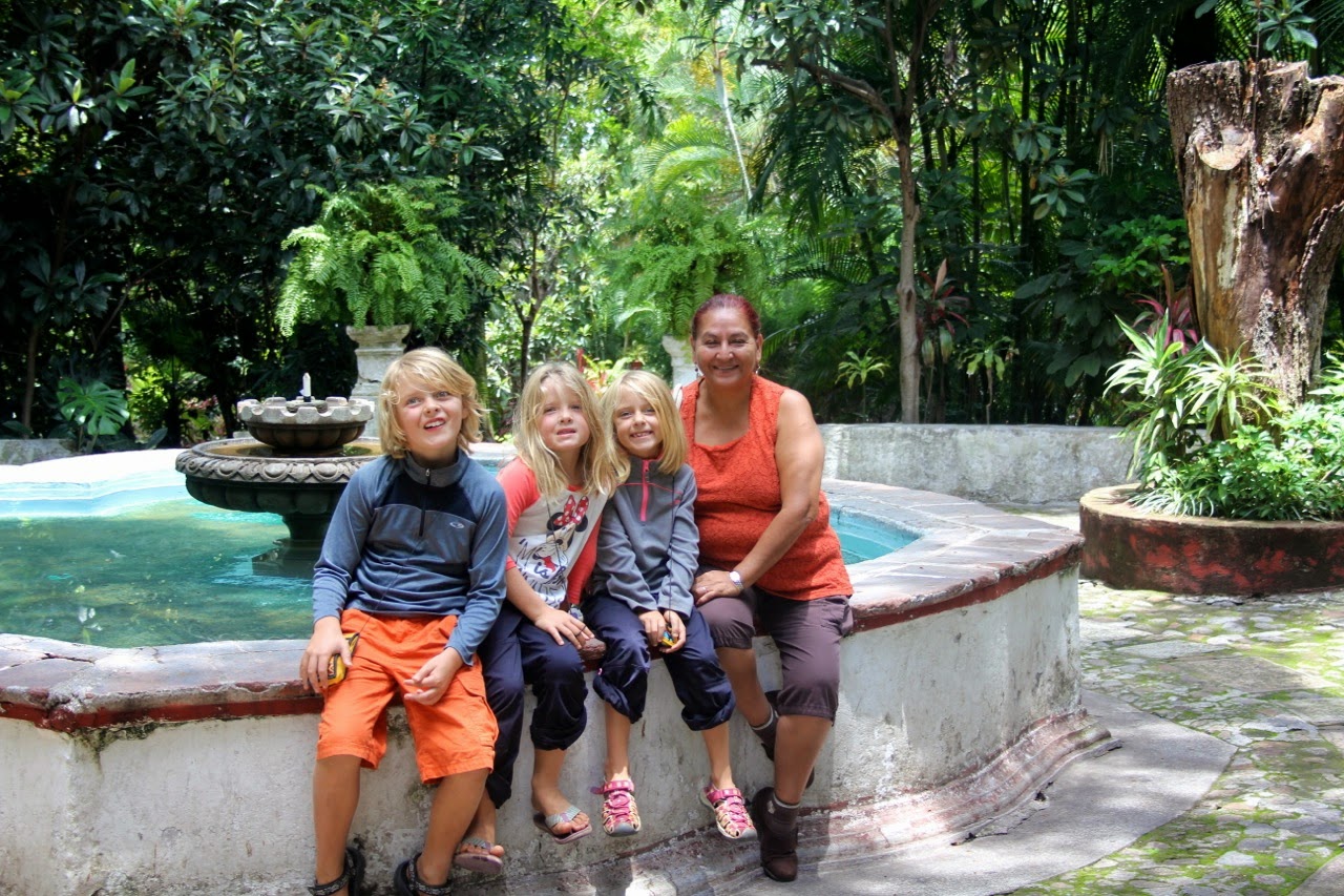 | Kids with their Spanish teacher, Vicki at the Borda Gardens in Cuernavaca |