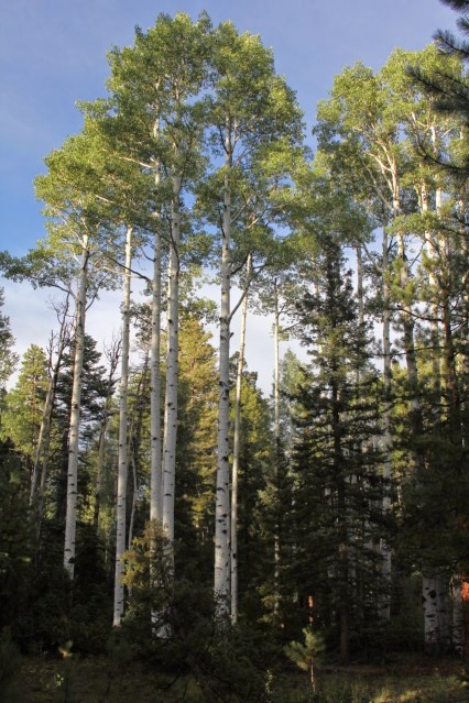 The old growth aspen here are magnificent. I measured one this morning with a 5 foot circumference. Stunning. There are meadows ringed with these giants that make you feel like you just stepped into a Tolkien novel.
