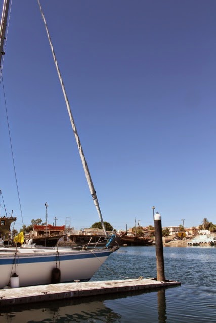 We saw many on our radar while it was dark, but they were easy to spot as the sun rose finally above the eastern ranges beyond the shoreline. Once we came close to shore, our next issue was the tide. We are lucky that the difference between low and high tide this time of year is about 16 feet. At some points of the year, that difference will be in the 20’s. High tide was 12:30, so Mike went in to the harbor to announce our unplanned early arrival at the marina and we waited for the noon hour. I am happy to say that we made it in without incident and got to our slip just fine. The tide change here is so extreme compared to the 1 or 1.5 meter differences we are accustomed to in the south.