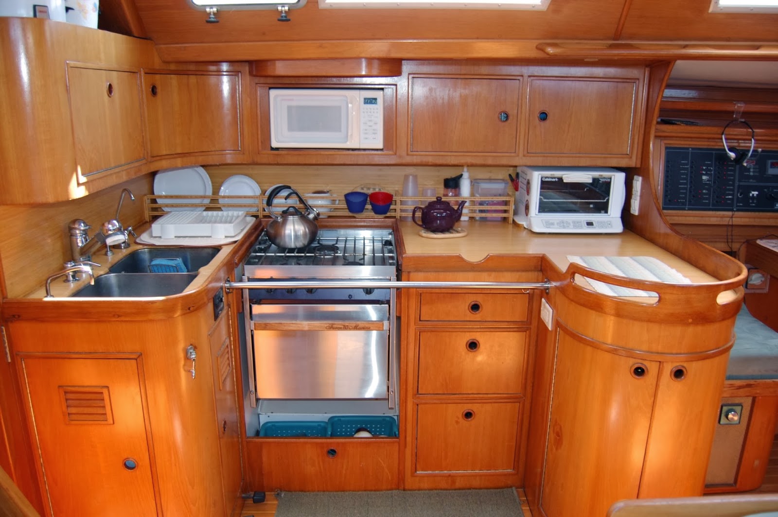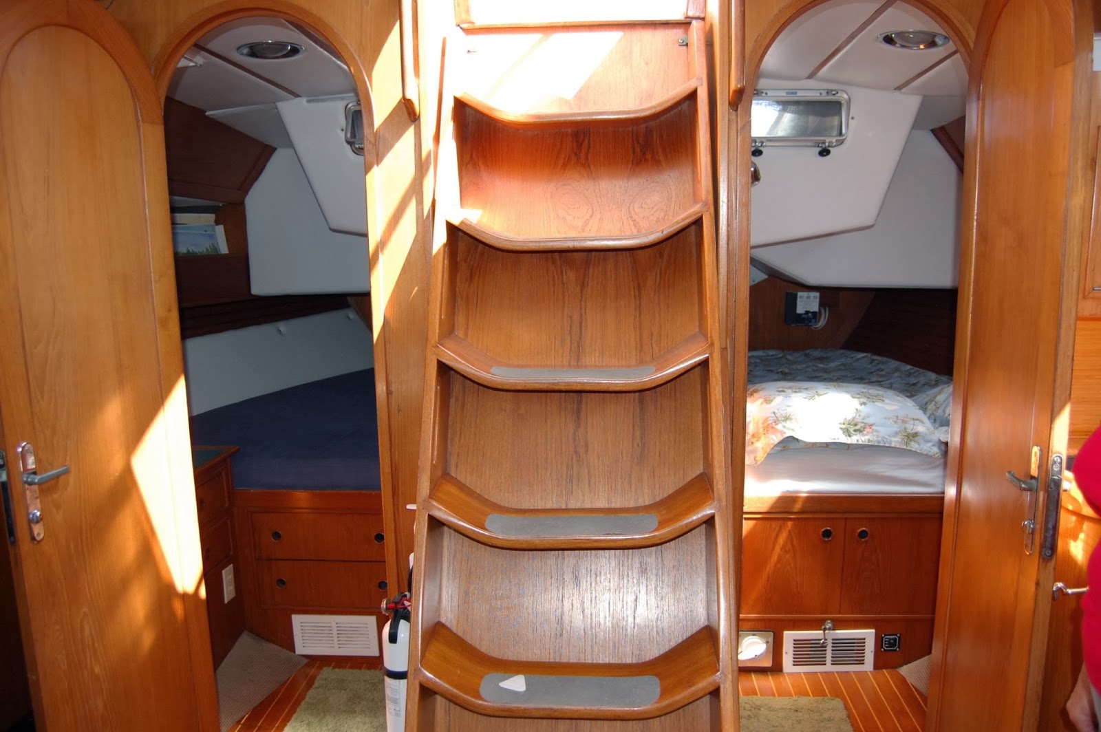 | Companionway with the kids’ Port and Starboard cabins aft |
