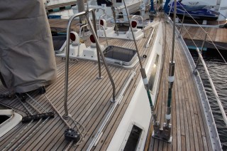 Mangas has a sugar scoop stern that allows for a swim ladder and easy area to exit and enter the boat. Just forward of the sugar scoop is the cockpit and then companionway. Below, behind the companionway, she has port and starboard cabins with double beds and a jack-n-jill head that runs between them. The salon is at the foot of the companionway with the galley to port and the settees to starboard. Continuing forward, past the navigation station on port, there is the main cabin with a pullman berth on the starboard and a settee, desk and lockers on the port. Continuing forward from the cabin is the main head with shower and finally the forepeak locker for storage.